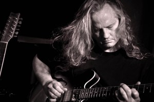 Opening with a piece called ‘Hangman’, Reed’s optimistic, energy-packed performance blew the cobwebs out of the rather stuffy, claustrophobic basement, already standing room only. At first sight, his technique looks awkward, left hand hanging over the guitar neck from above, playing almost keyboard-style, with both right and left hands at the same time tapping and slapping for bass drum and snare backbeat effect. Two numbers in similar vein followed, one inspired by the Japanese ‘bullet train’ and going almost as fast.