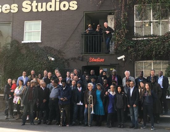It is thirty years since Dill Katz and Colin Dudman founded Premises Studios in Hoxton. Today a mighty collection of British jazz musicians who have worked at the studios assembled there for a photo in the spirit of Art Kane’s “A Great day in Harlem”. Courtney Pine and Talvin Singh were interviewed by Alice Bhandhukravi for BBC London TV News.