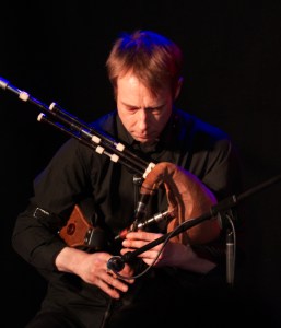 The weekend was brought to a close by a performance of the Fraser Fifield / Graeme Stephen duo, presented in association with Soundhouse at the Traverse Theatre. Sitting right on the boundary between jazz and folk music, this was a concert that made one question the validity of such genres: much of the material originated in the traditional Scottish music, but even when playing a reel, it seemed absolutely jazz. Fifield played a variety of whistles as well as a curved soprano saxophone and Border pipes. Stephen somehow gets as much variety of sound from his one guitar. Both musicians used loops and pedals to expand their range, creating a real depth to their music. Stephen and Fifield have been playing together for many years, and know each other’s music and style intimately; together they produce some remarkable music.
