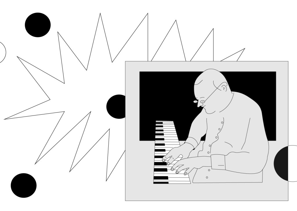 Mike Westbrook. Drawing/design by Cecile Mirande Broucas